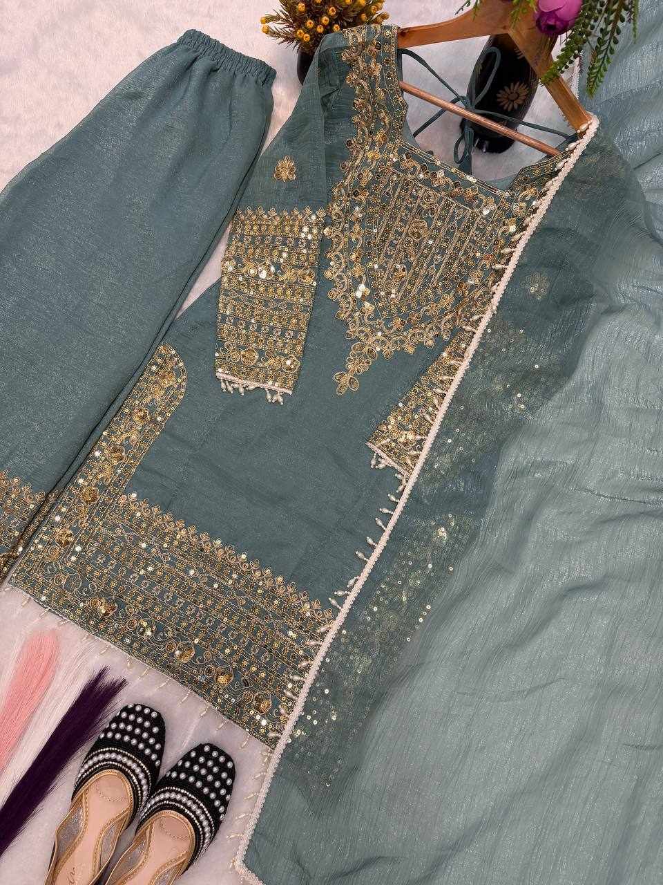 • Fabric: Heavy Crunchy Silk with Heavy Thread Embroidery & Sequence Work