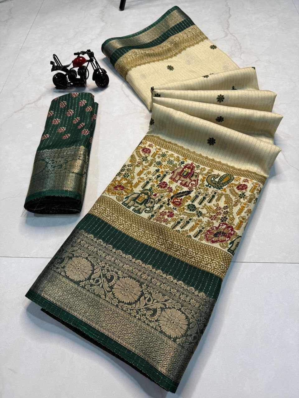 | Name : | PIYU 1044 RECCO HATHI Green Saree |