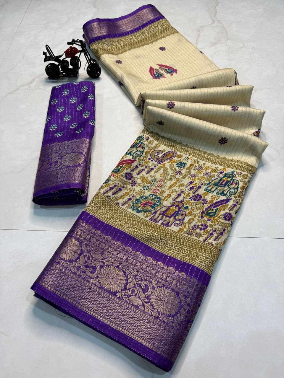 | Name : | PIYU 1044 RECCO HATHI Purple Saree |