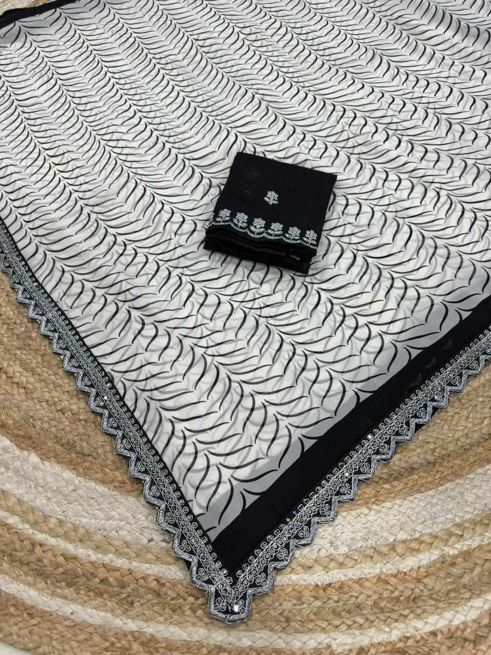 Crafted with graceful georgette and detailed coding embroidery lace work, this saree gives a rich and classy look. Perfect for festive occasions, parties, weddings, and special celebrations.